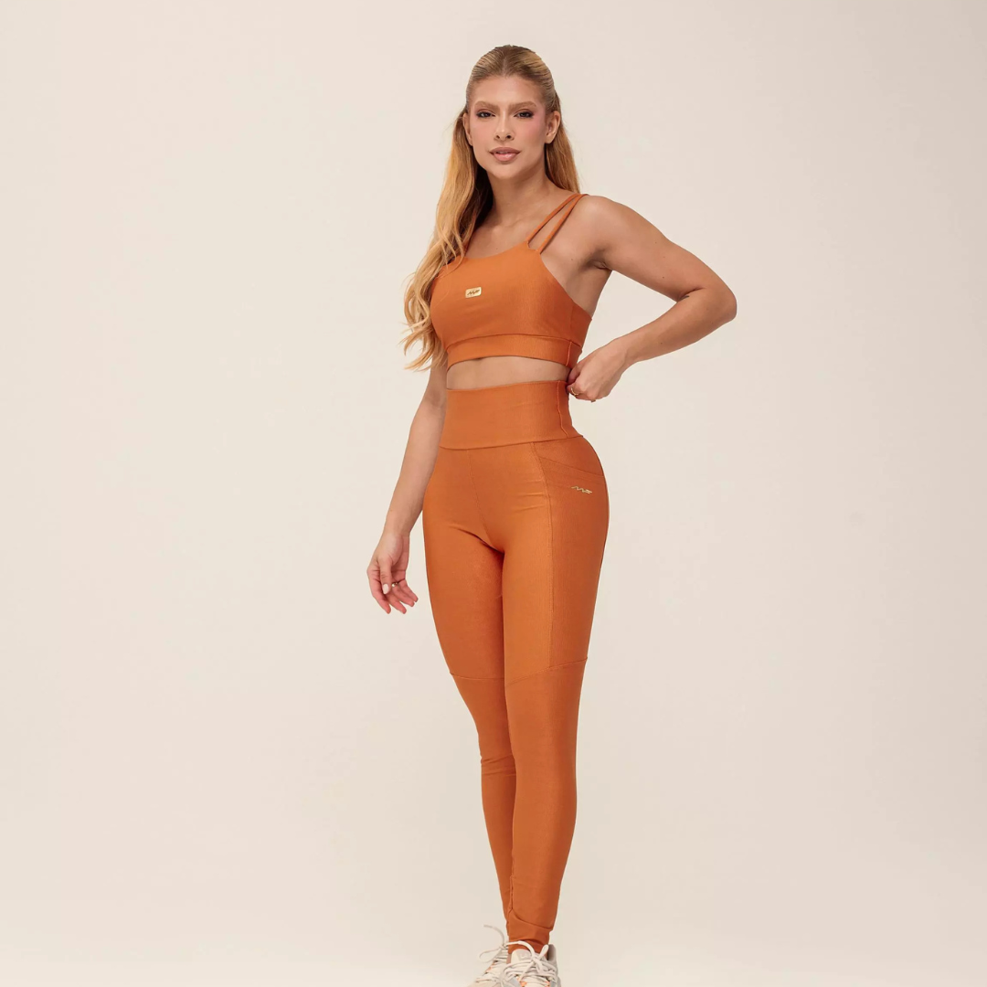O Conjunto de Calça Kate combina conforto, elasticidade e um visual moderno, com recortes sutis que valorizam a silhueta sem perder a leveza. O top possui alças duplas e modelagem reta, oferecendo firmeza e conforto para treinar com segurança. A calça conta com cós alto modelador e bolsos laterais funcionais, trazendo praticidade e sustentação no dia a dia ou na academia.